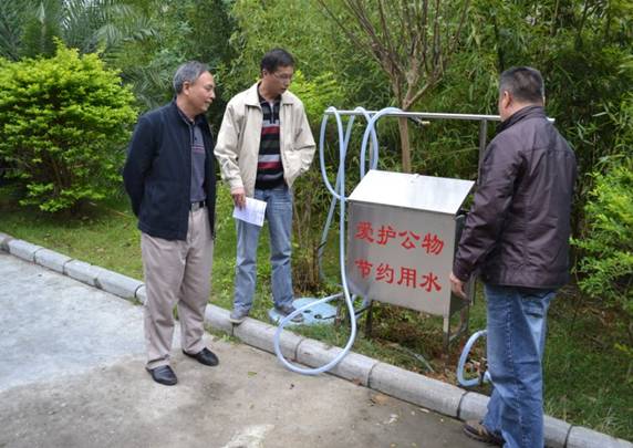 自治区评价验收组实地查看鱼峰区行政中心节水设备管理情况