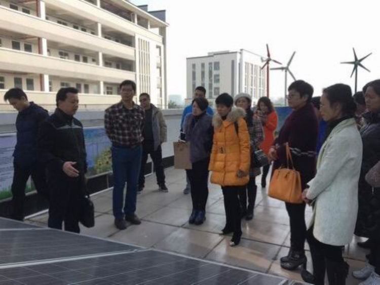 参加仪式的领导参观指导了基地节能科普一期工程,对光伏发电、风能发电、雨水回收循环利用系统以及各种绿色照明、新能源充电桩、节能灶具等新型节能设备和产品的展示科普意义表示充分肯定,并和学生们一起体验了洗手间减压阀、控水器的节能效果。