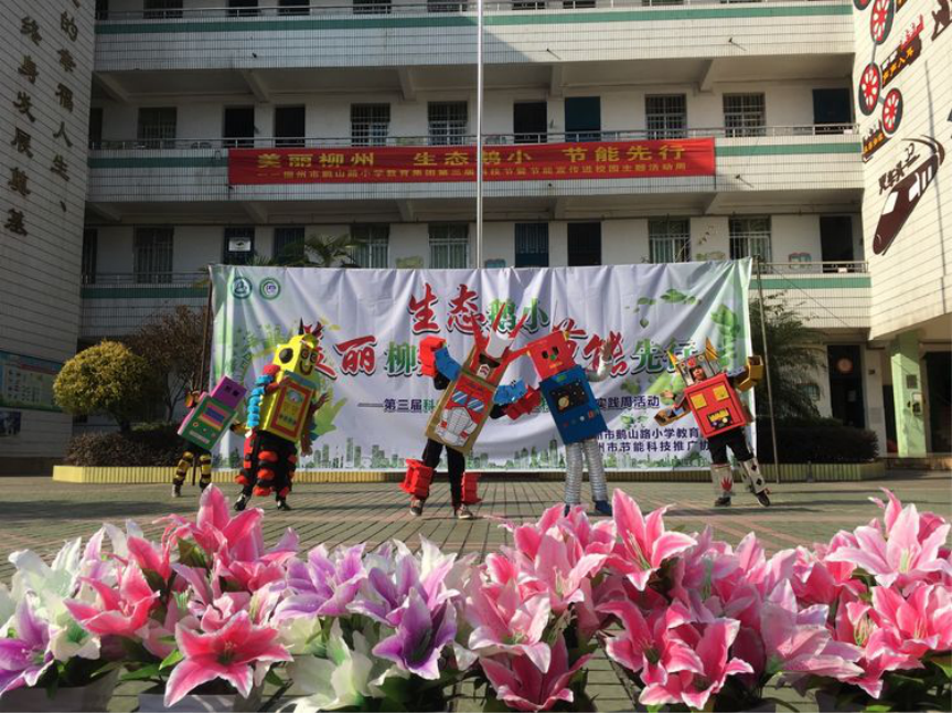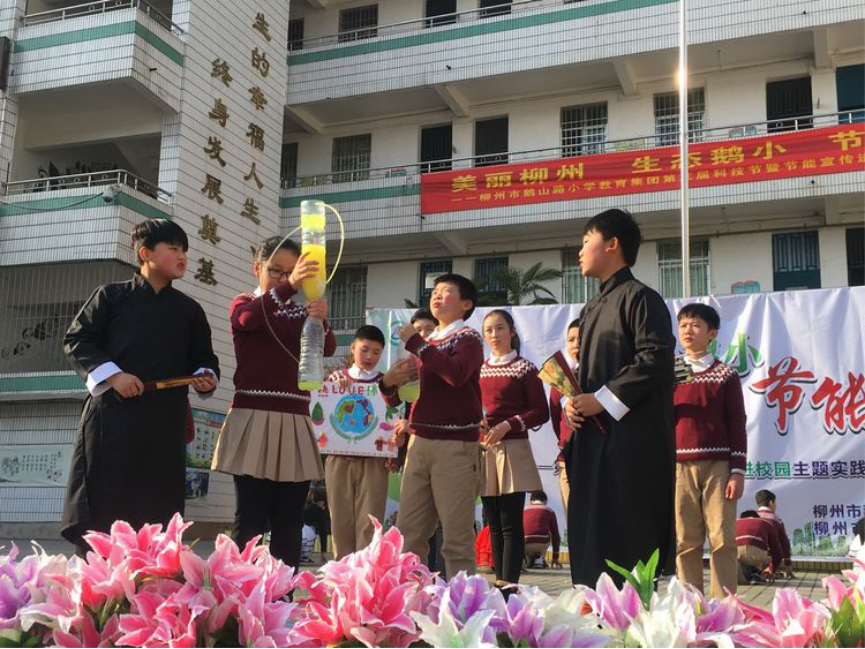 据悉,柳州市鹅山路小学教育集团以党建为引领,以协会共建为推手,举集团之力,深入推进"一校一品牌一校一特色"创建,以"节能减排、生态科技"作为西堤分校特色品牌建设的抓手,全力打造柳州市首个"校园节能科普教育基地"。基地建设以项目方式有序推进,教育集团三校区于2017年12月25日-29日开展了"美丽柳州、生态鹅小、节能先行" 第三届科技节暨节能科普进校园主题实践周活动,组织开展了寻找身边"节能环保达人"、节能知识进课堂、"童言宣节能"节能宣讲、"童眼看节能"手抄报评比,"巧手绘节能"书画展、"同心倡节能"节目汇演等丰富多彩的活动,通过入耳、入脑、入心的系列活动,全校上下总动员,感受体验节能改变生活、科技引领未来,全体师生、家长从观念到行为都发生了转变。
